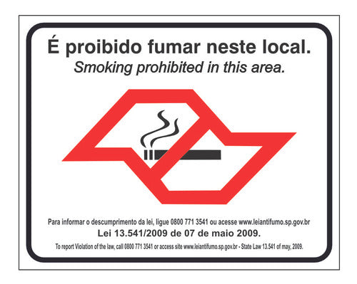🚭 Placa de Sinalização – Proibido Fumar (Lei 13.541 - Estado de São Paulo) ✔️ Conformidade legal | ✔️ Comunicação clara | ✔️ Fácil aplicação