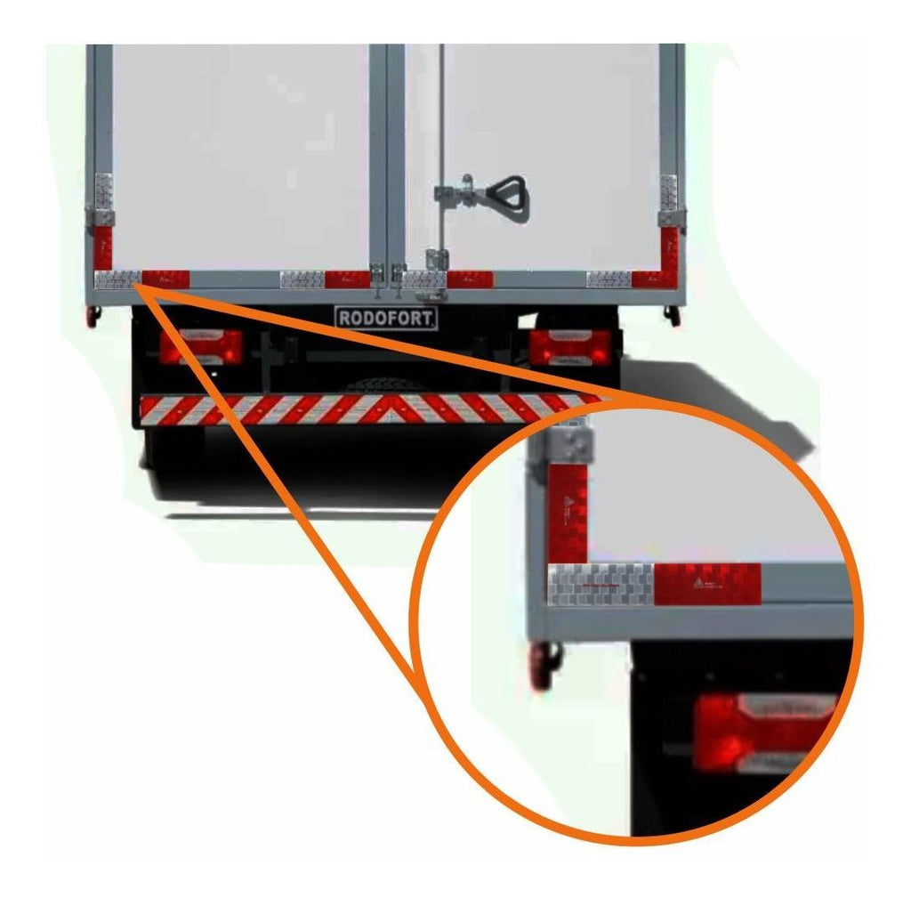 As faixas devem ser externas para a traseira do caminhão, na vertical ou na horizontal. Devem estar alinhados e introduzidos nas laterais e traseiras da carroceria o mais próximo possível da borda inferior, na lateral direita e esquerda deve ser aplicado na borda inferior cobrindo 33,3% da área da borda, e no painel traseiro deve ser aplicado em 80% do perímetro e também na volta das portas. Apenas nenhum caminhão-tanque deve ser instalado no meio do tanque.