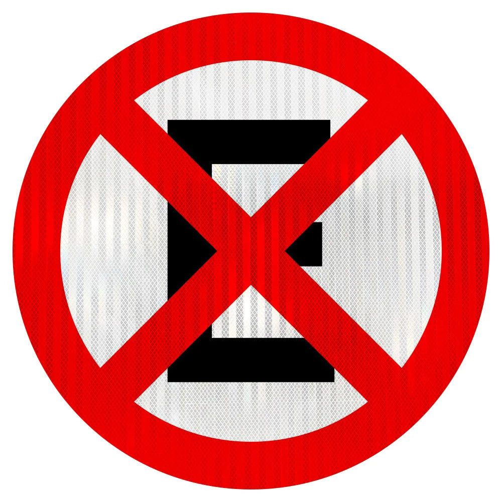 🎨 Cores e acabamento • Fundo: Branco refletivo • Orla: Vermelha refletiva • Símbolo/texto: Preto fosco • Verso: Preto fosco