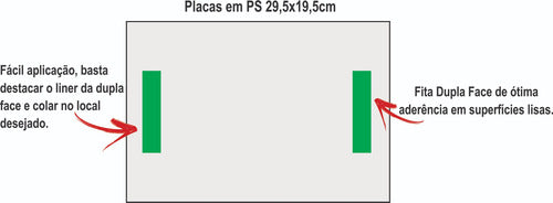 📦 ITENS INCLUSOS NA EMBALAGEM • 1 Placa em PS 1mm (29,5 x 19,5 cm) • Fita dupla face aplicada no verso da placa