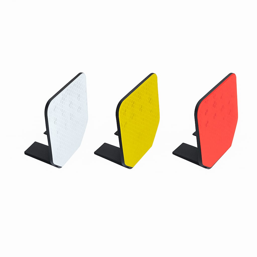 Equipado com película refletiva de Alta Intensidade (AI) e corpo em aço galvanizado, o catadióptrico proporciona um delineamento claro das defensas metálicas, evitando acidentes e orientando o tráfego de forma eficiente — tudo conforme as exigências das Normas Técnicas da ABNT.